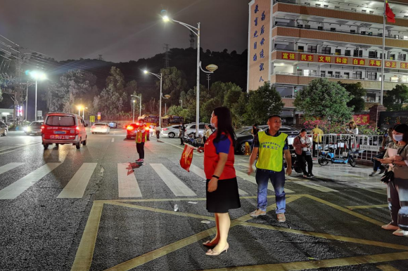 志愿者分队队员现场引导车辆有序通行